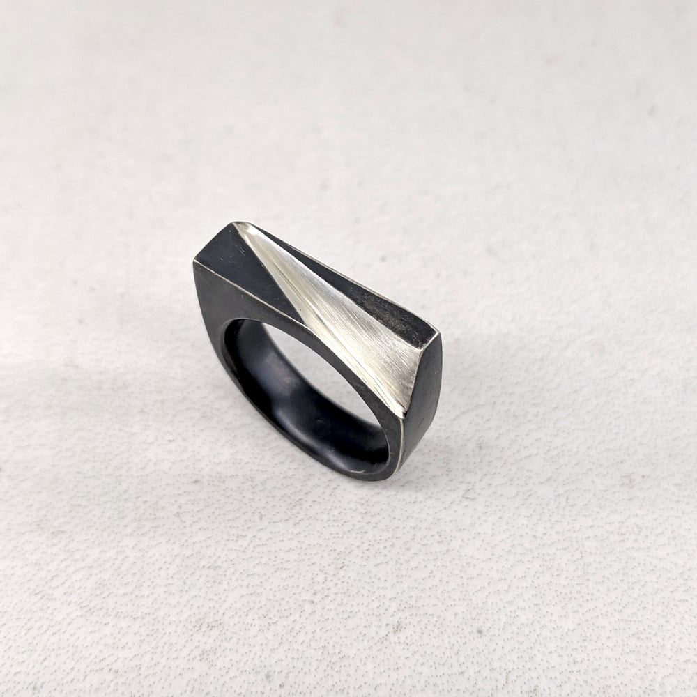 *Please note this is a solid 925 Sterling Silver ring and the dark finish is applied over the top. As the ring is worn, the black will slowly fade to reveal the silver underneath, giving it a beautiful aged look - just like your favourite pair of jeans. If you prefer a solid black finish, we can re-apply this as required for a small cost. Please don't hesitate to contact us if you have further questions about this finish.